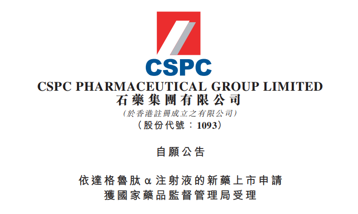 石藥集團依達格魯肽α注射液的新藥上市申請獲國家藥品監(jiān)督管理局受理