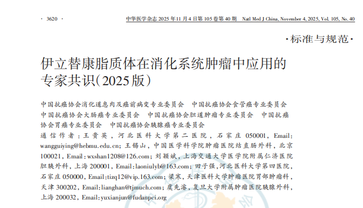 喜訊 |《伊立替康脂質(zhì)體在消化系統(tǒng)腫瘤中應(yīng)用的專家共識(2025版)》正式發(fā)布