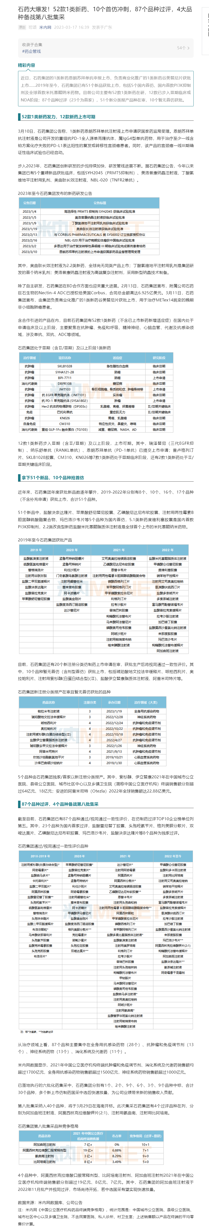 石藥大爆發(fā)!52款1類新藥、10個(gè)首仿沖刺,87個(gè)品種過評(píng),4大品種備戰(zhàn)第八批集采